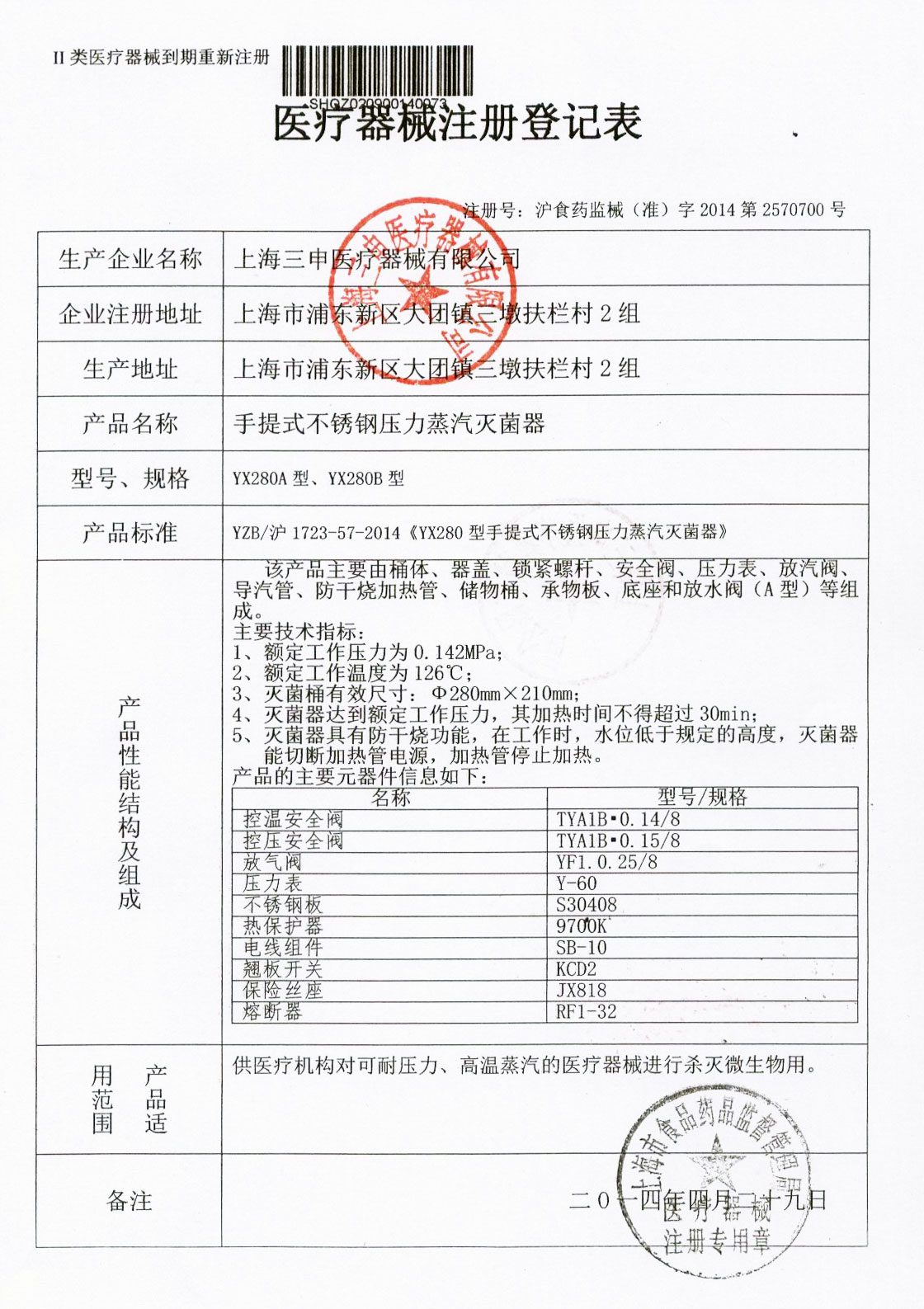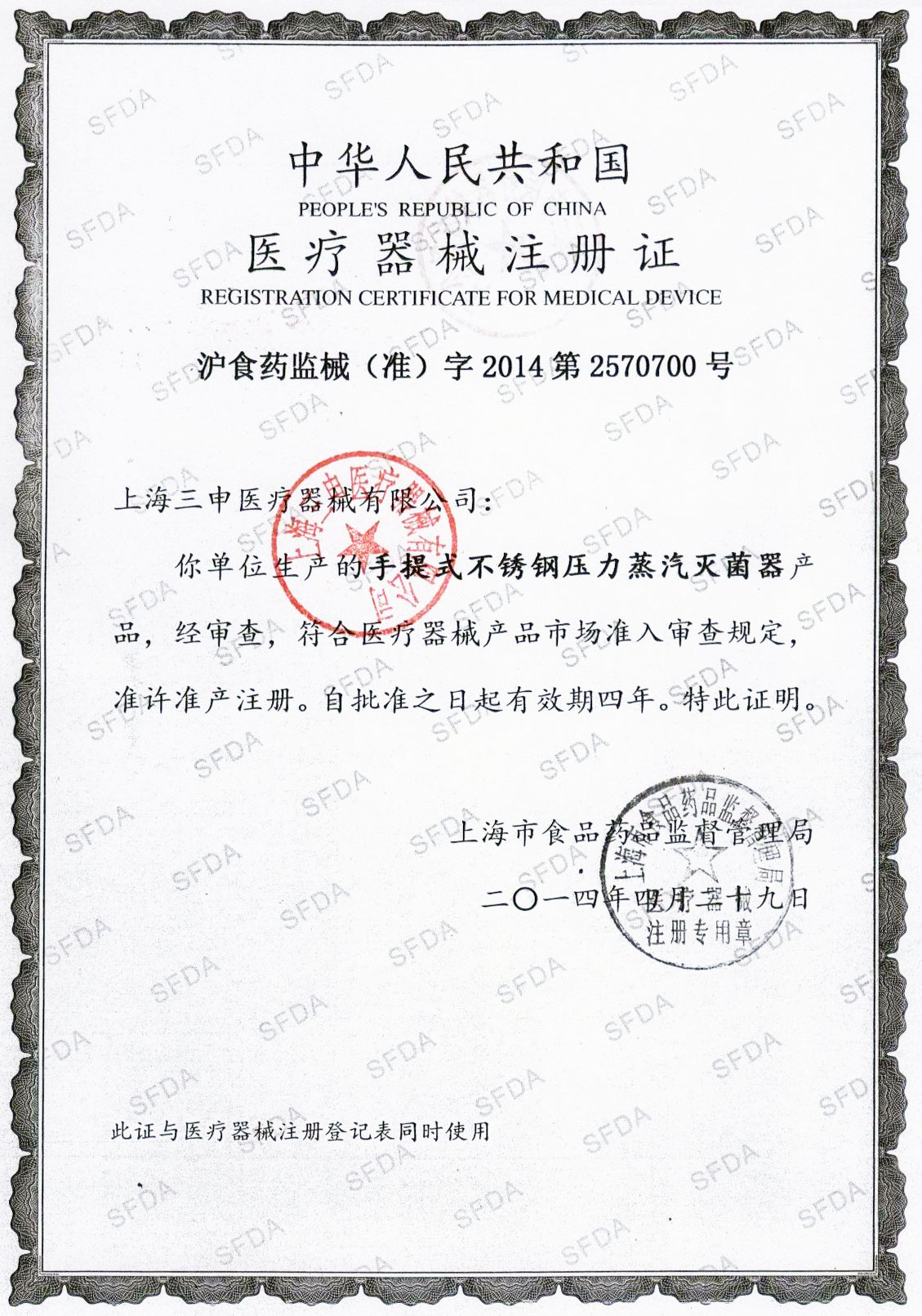- 有医疗器械产品注册证和特种设备制造许可证(压力容器)