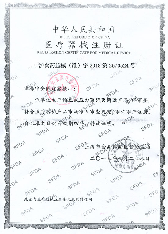 本品属于压力容器受控产品,符合国家对压力容器设计与制作的相关规定,并取得了食药监产品注册证和消毒产品卫生许可证,是我厂研制开发的新一代智能型立式压力蒸汽灭菌器,其结构先进可靠,具有快捷简便的操作方式和功能齐全的控制系统,在安全控制上;具有超压自泄、断水保护、超温自控的数套安全联锁的装置。本品操作系统采用先进的微机自动处理技术,灭菌运行过程实行微机自动控制,操控台上的液晶显示窗显示整个灭菌动态和功能运行情况,产品主要部件采用优质不锈钢材料精制而成,灭菌指标达到国家医用手术级标准,是各医疗卫生、大专院校、食品化工、生物科研等单位对器械、敷料、药液、食品器皿、培养基等物品进行消毒灭菌的理想产品。